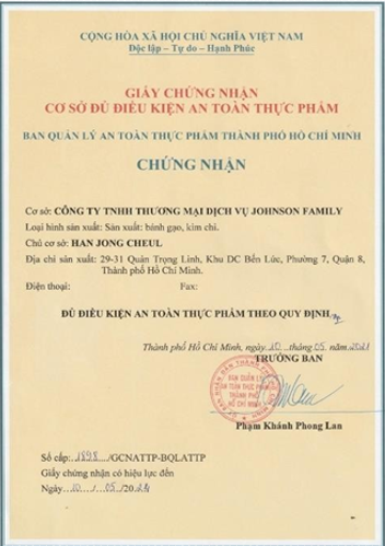 Giấy chứng nhận cơ sở đủ điều kiện An toàn Thực phẩm