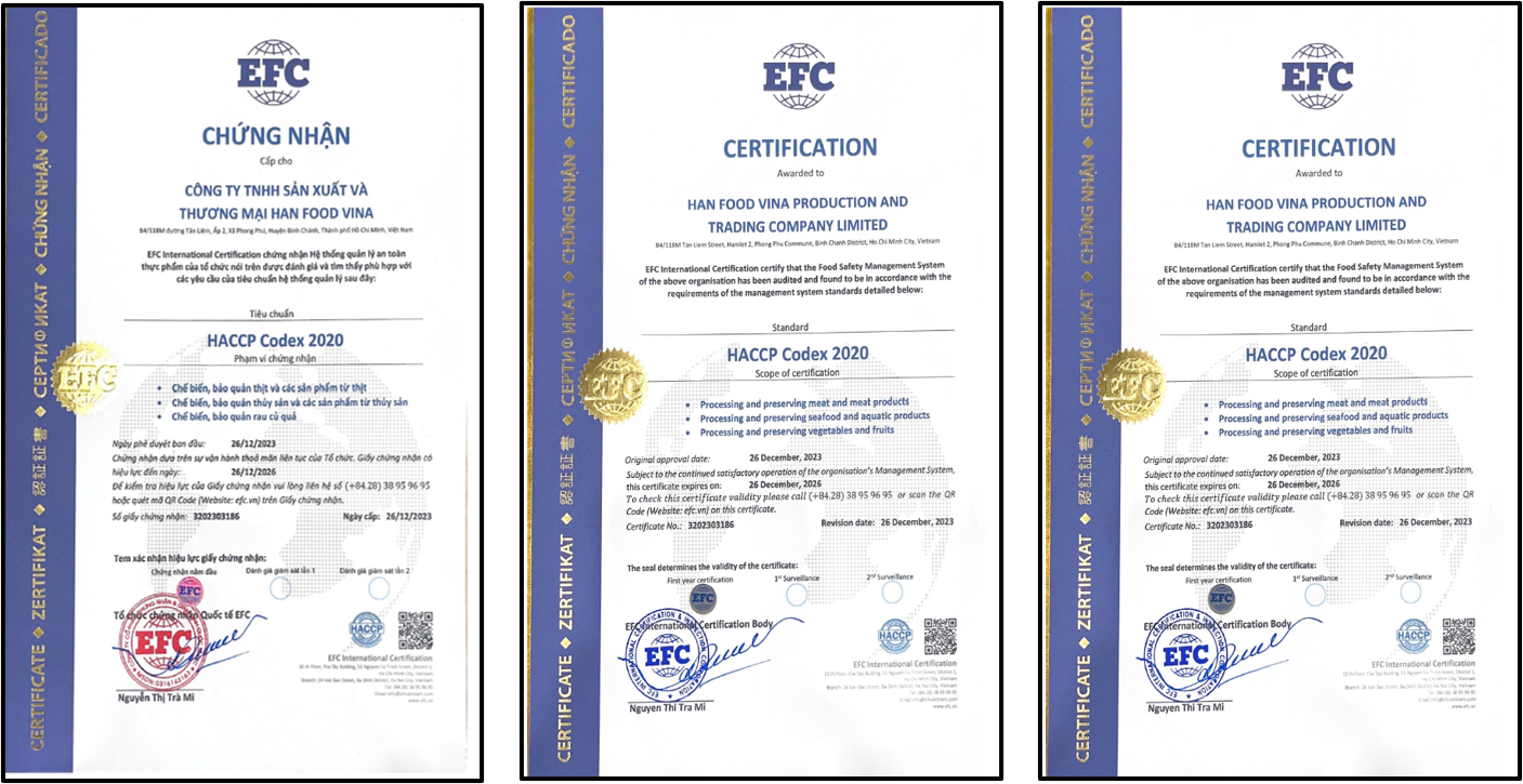Cam kết chất lượng và an toàn thực phẩm với các chứng nhận uy tín